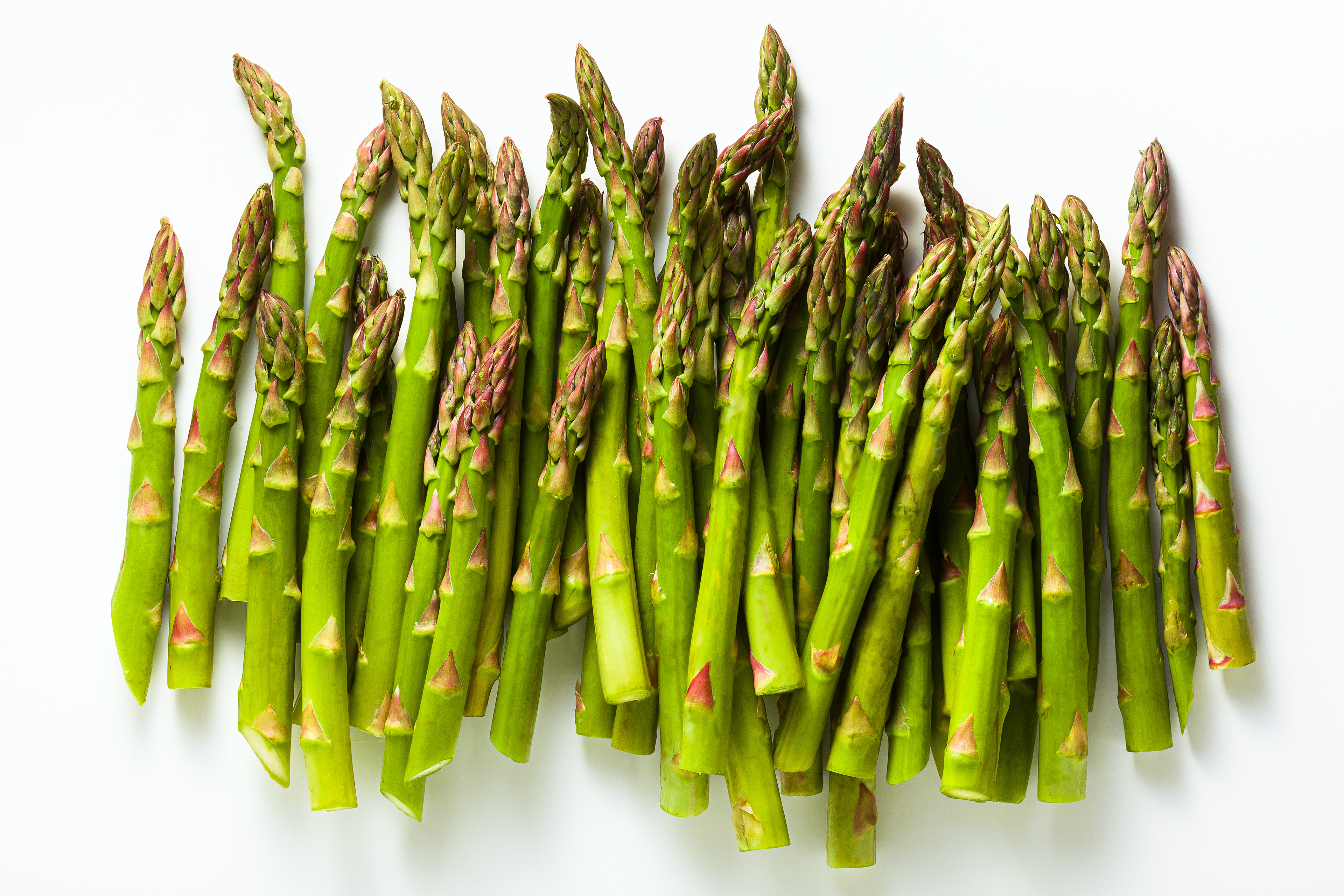 Group of ripe fresh spring asparagus isolated on white